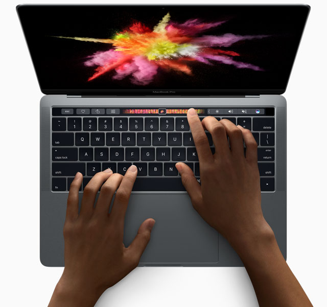 Faster performance in a remarkably thinner and lighter design. The brightest, most colourful Mac notebook display ever. And the revolutionary Touch Bar*, which automatically puts the tools you want on your keyboard, exactly when you want them. The new MacBook Pro is built on groundbreaking ideas. And it's ready for yours.
